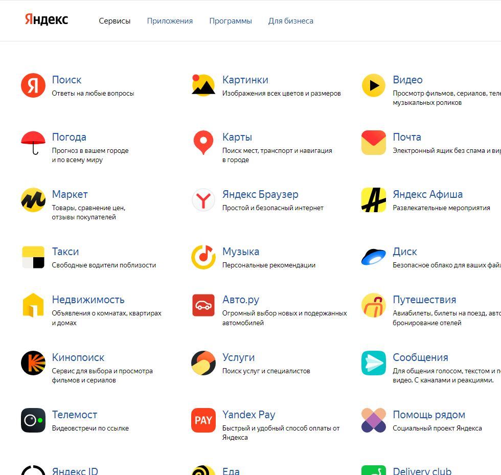 Сервисы Яндекса